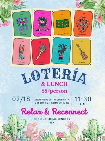 Wednesday, February 18th we will be hosting Loteria (Mexican Bingo) and lunch in the store at Shopping with Siobhain for our local seniors.