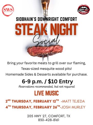 Our next Steak Night Social will be Thursday, February 26th from 6pm - 9pm.